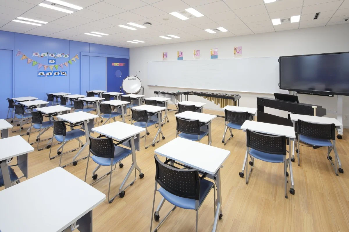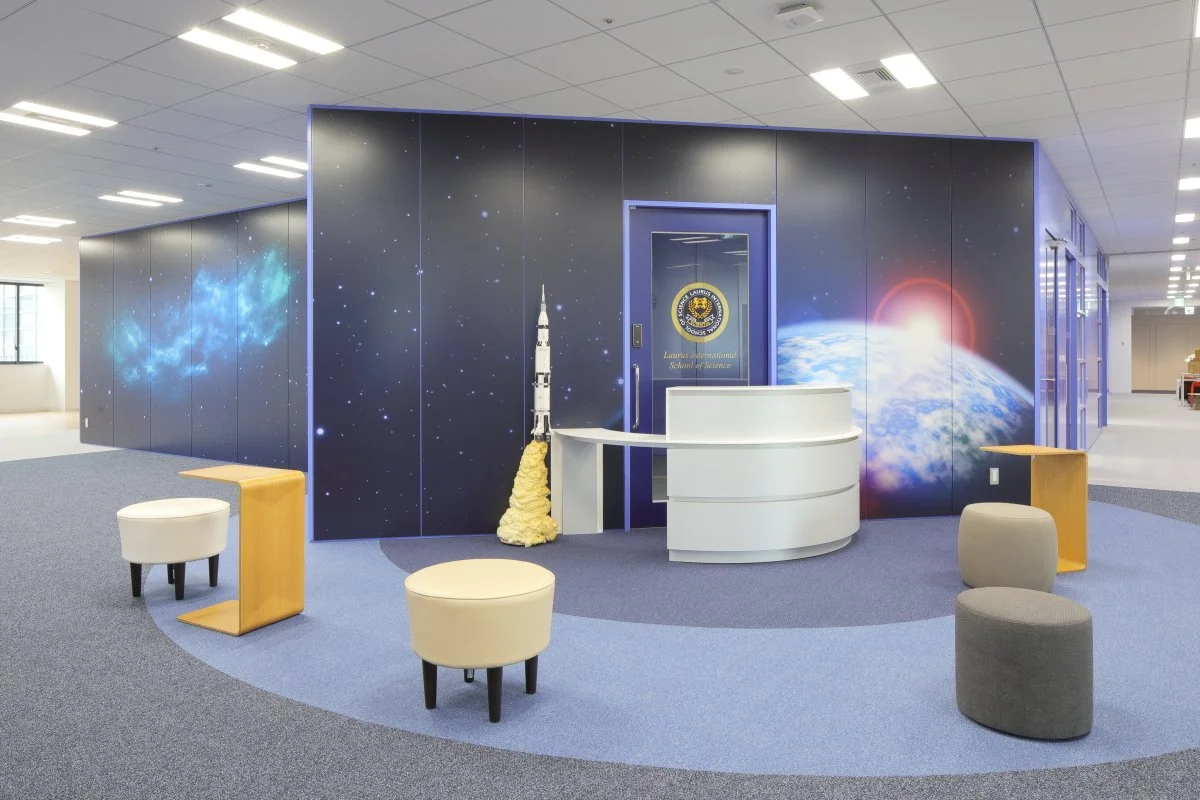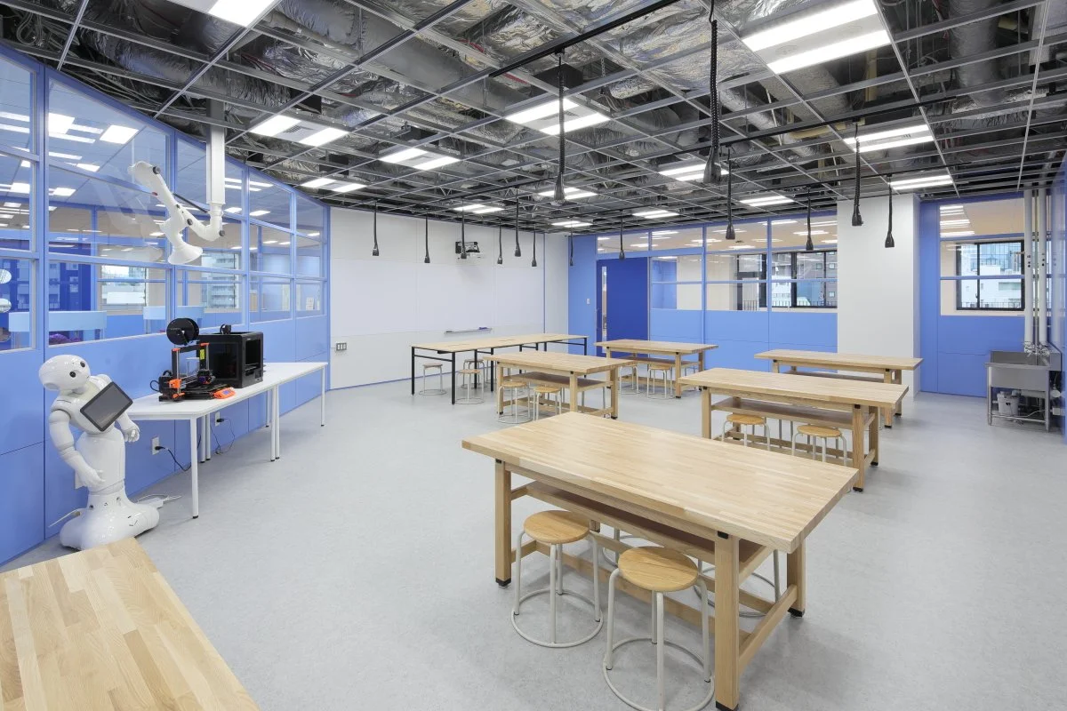 • 中等教育レベル以上の生徒には、一般的な学業用にMacBook Airコンピュータが支給される。シンギュラリティ・フロアには複数の作業室(アートルーム、イノベーション・ラボ、サイエンスルーム)があり、生徒たちは電子部品、はんだ付け装置、機械部品、人工現実感システムなどを利用することができる。