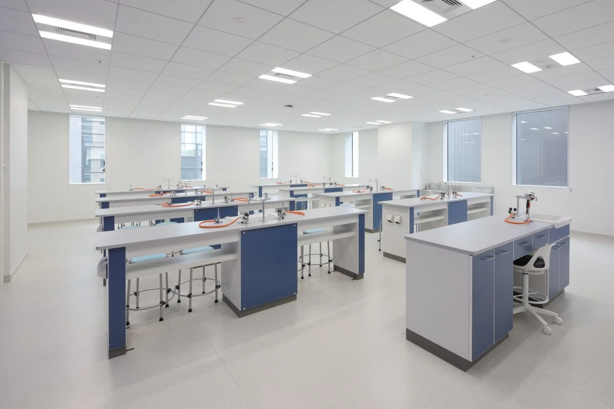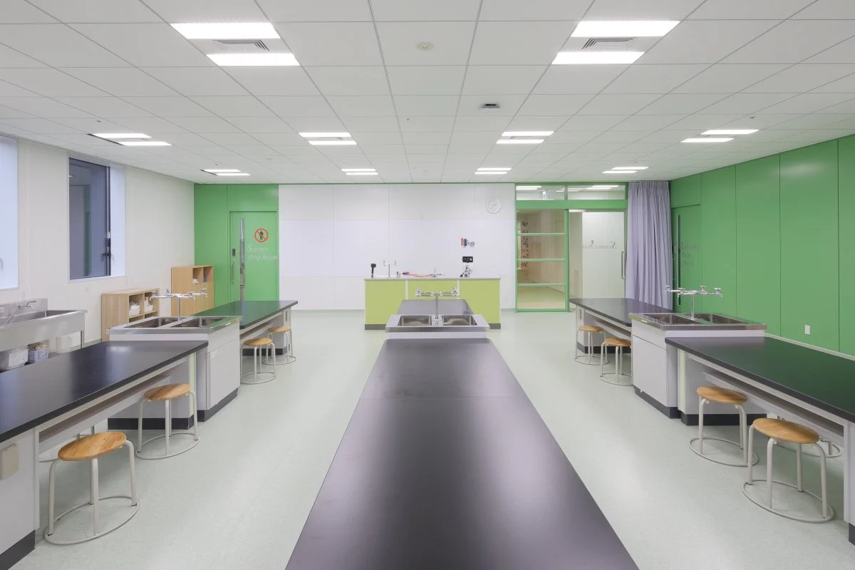 顕微鏡や、遠心分離機、電気泳動装置、インキュベーターなど、細胞生物学、微生物学、遺伝学などの実験的探求を可能にするバイオテクノロジー実験器具を備えた高度な実験室によって、学習はさらに充実したものとなる。